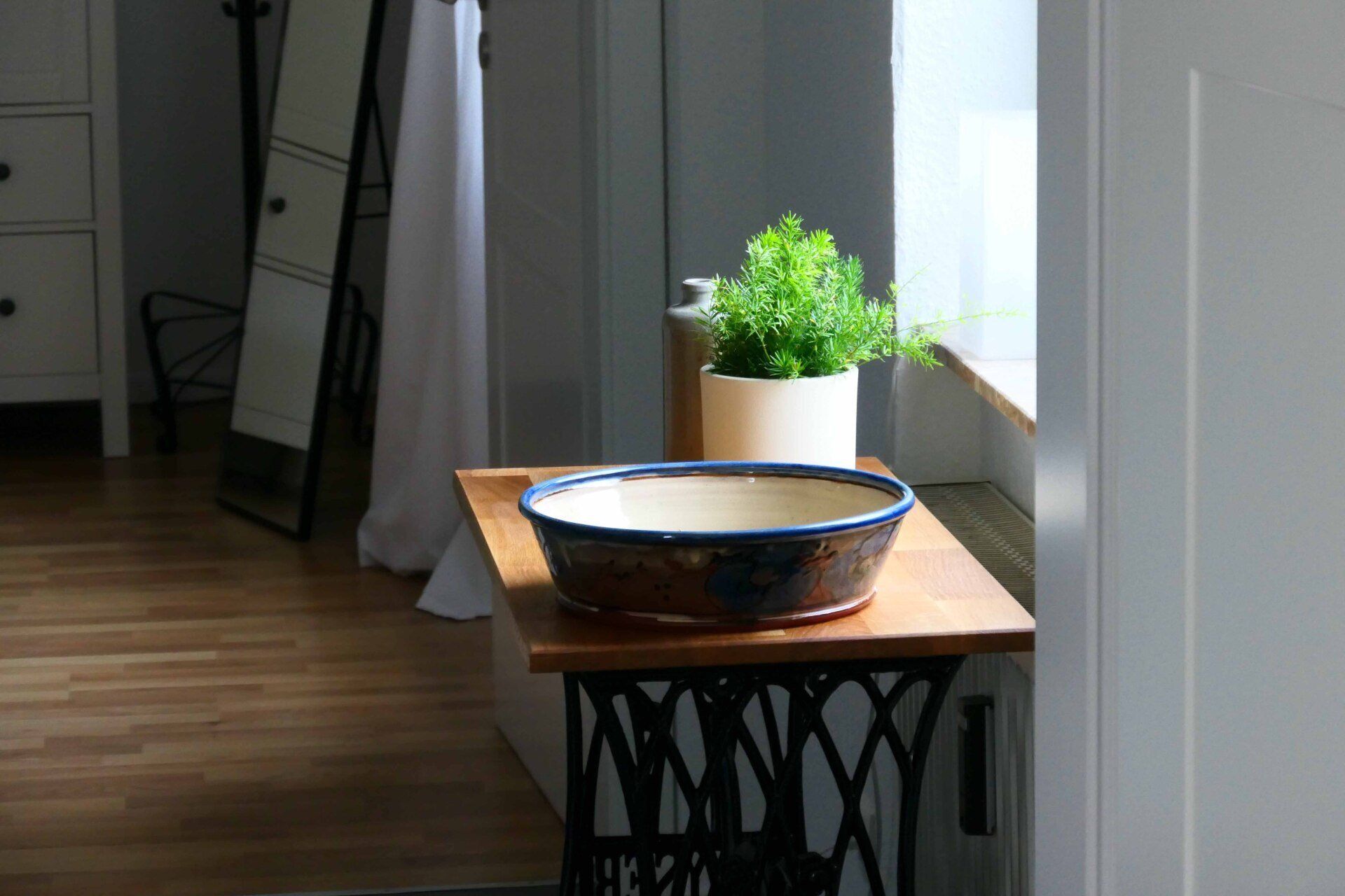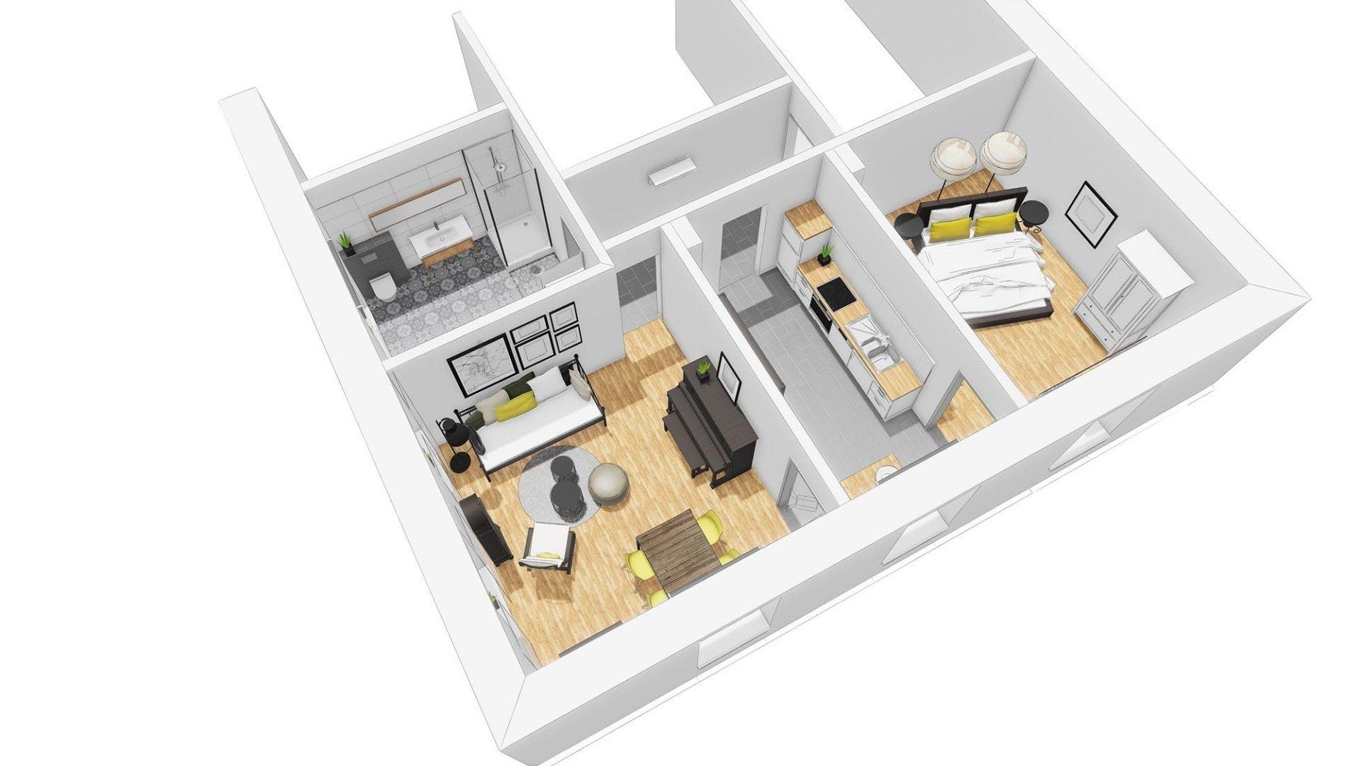 Ihr geräumiges Bad ist mit Dusche und WC ausgestattet. Der Essplatz befindet sich im Wohnzimmer.